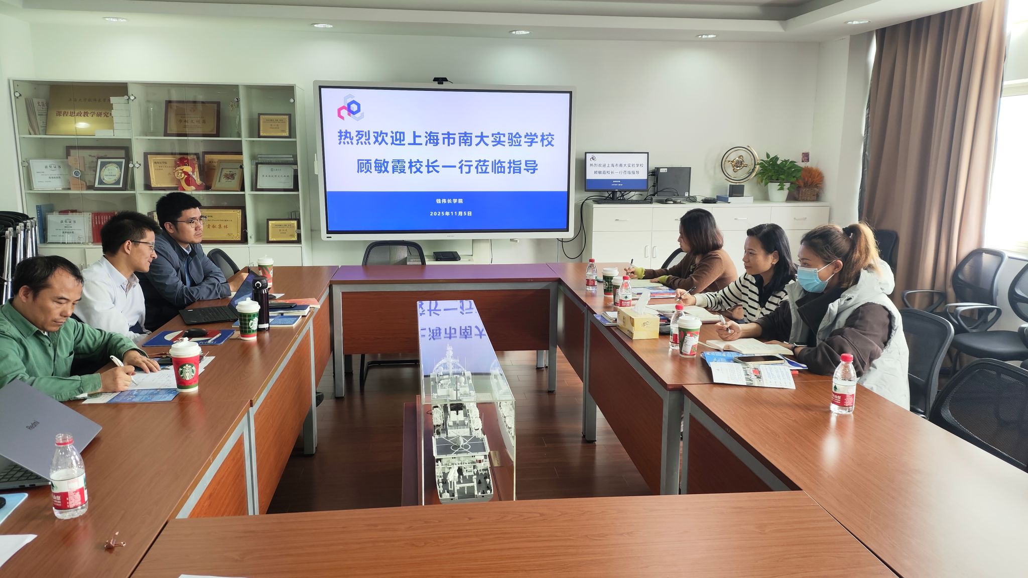 2025年11月5日,宝山区南大实验学校校长顾敏霞、副校长黄贝贝、学生发展中心副主任顾倩倩一行来访上海大学钱伟长学院,就推进大中小学思政教育一体化合作进行专题交流。钱伟长学院党委副书记、副院长沈青松,副院长许新建、副院长(挂职)孙强、团委书记魏仲奇参加座谈。