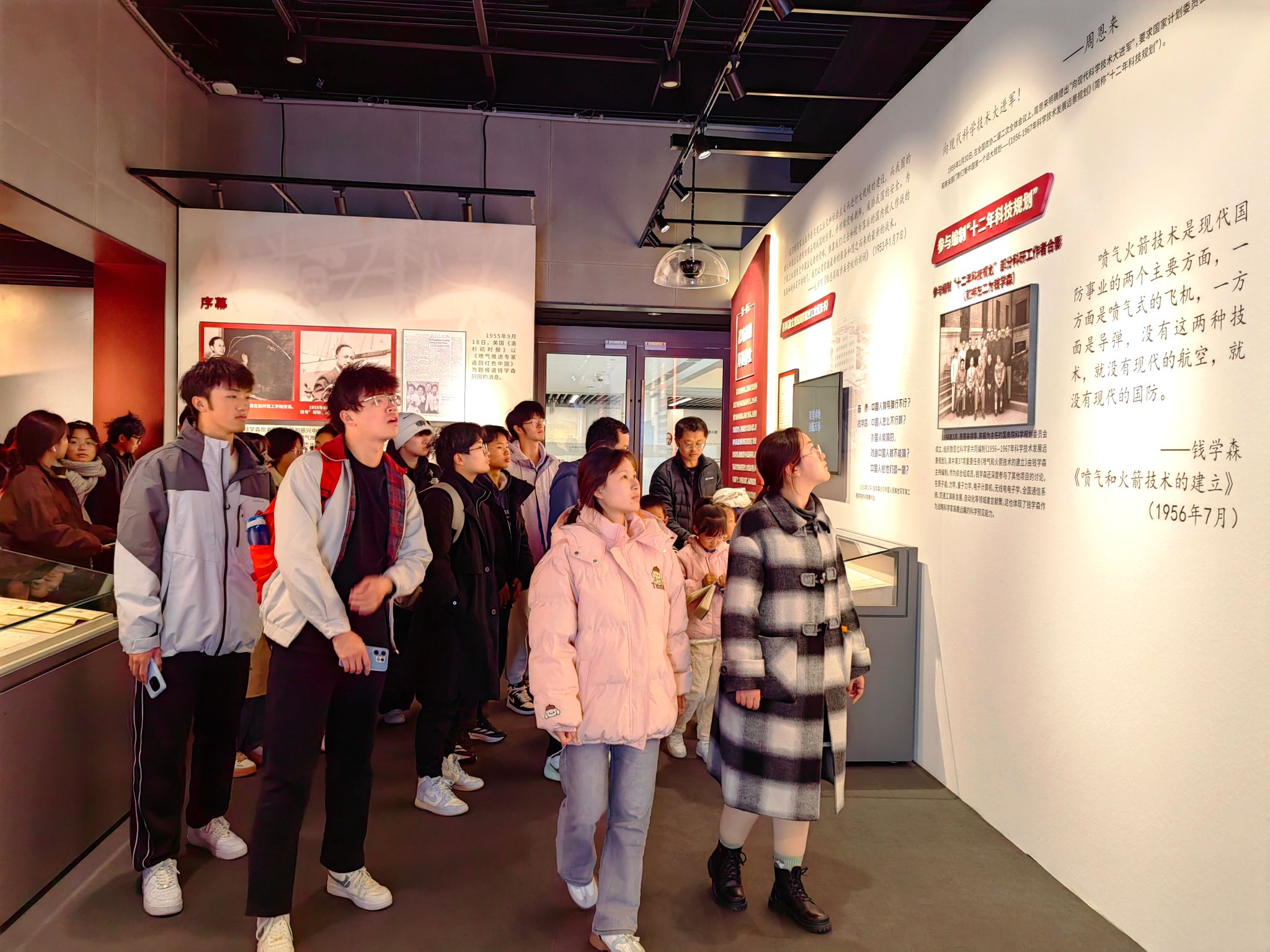 11月16日上午,师生们走进中国科学家博物馆,通过沉浸式学习中国科学家群体的奋斗历程与重大科技成果,深刻感悟追求真理、严谨治学的科学精神。馆内,“两弹一星” 元勋们用过的计算尺、屠呦呦团队提取青蒿素的实验装置、嫦娥探月工程的核心技术模型等实物展品静静陈列,搭配沉浸式影像资料与科研日志手稿,生动再现了我国科技工作者胸怀祖国、服务人民的赤子之心。从隐姓埋名攻坚克难的老一辈科学家,到勇攀高峰敢为人先的新时代科研工作者,他们用毕生坚守诠释了爱国报国的初心使命。学子们纷纷驻足观看于科学家们相关的实物展品,不时交流感悟,现场氛围庄重而热烈,纷纷表示要以科学家们为榜样,将个人专业所长与国家发展需求紧密结合,在学术科研中勇毅前行,为科技强国建设注入青春动能。