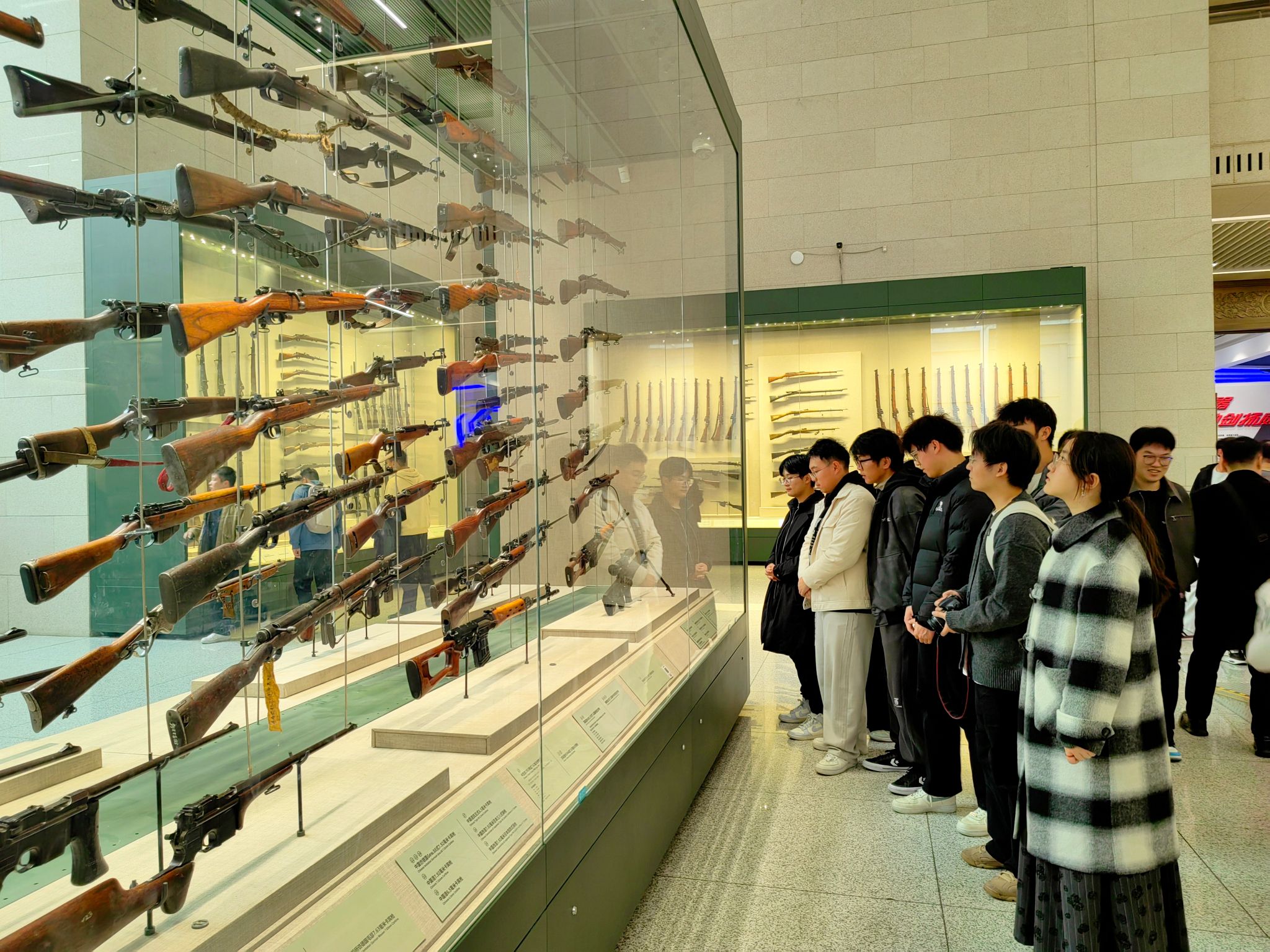2025年是中国人民抗日战争暨世界反法西斯战争胜利80周年,这场伟大胜利铸就了民族觉醒的精神丰碑,谱写了气壮山河的英雄史诗。中国人民革命军事博物馆内,一段段波澜壮阔的革命历史徐徐铺展。从土地革命时期的简陋武器到新时代的先进国防装备,从革命先烈的英雄事迹到国防力量的日益强大,全方位展现了中国人民解放军从小到大、从弱到强的发展历程,彰显了中华民族捍卫国家主权、维护世界和平的坚定决心。下午,学子们在展品前驻足聆听、交流感悟,在枪林弹雨的历史记忆中体会革命先烈的英勇无畏,在国防科技的飞速发展中感受祖国的强大实力,进一步增强了国家安全意识和民族自豪感,深刻理解了“强国必须强军,军强才能国安” 的深刻内涵。学生骨干黄宇博感慨道:“走进军博,映入眼帘的是毛主席的雕像,进入大堂,战机、火箭等武器装备静静陈列,每一件都镌刻着烽火岁月的痕迹。从南昌起义的枪械到抗美援朝的钢枪,从两弹一星的模型到现代国防装备,展品串联起中国军队从弱到强的奋斗史。驻足在革命先烈的家书与勋章前,文字与实物背后的牺牲与坚守直击人心。这不仅是一次历史回顾,更让我读懂‘哪有什么岁月静好,不过是有人负重前行’。如今的和平来之不易,作为新时代青年,更应传承先辈精神,努力学习,矢志科技报国,以担当来守护这份安宁,为国家发展贡献力量。”